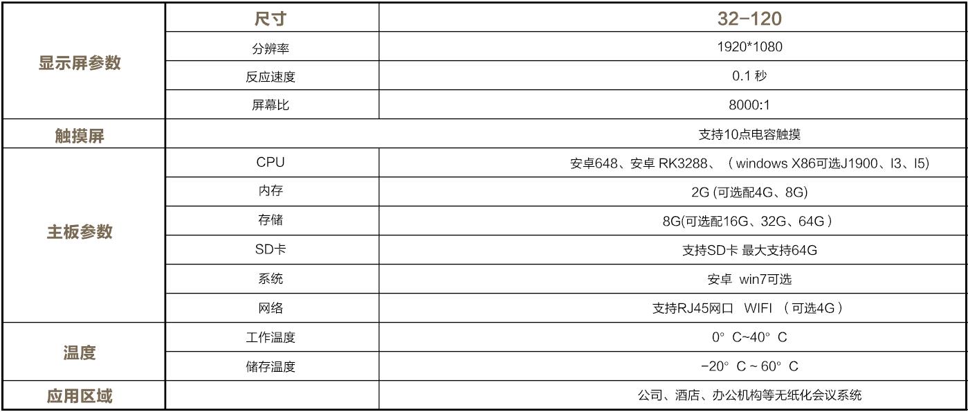 質(zhì)感拉絲金屬;高清畫(huà)質(zhì);采用紅外觸摸技術(shù),觸摸極速反應;內置WIFI;支持U盤(pán)導入內容。
